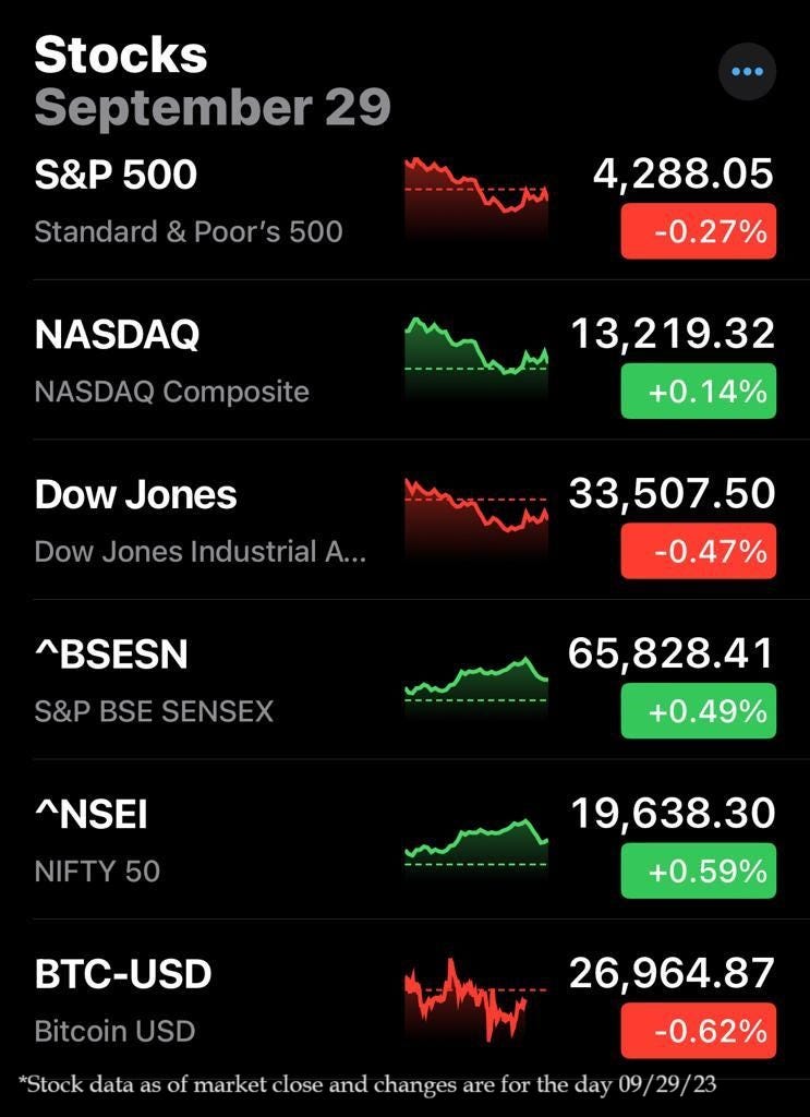 Market: On Friday, stocks took a hit as the S&P 500 fell by 0.3%, the Dow Jones lost 0.5%, and the Nasdaq managed a slight 0.1% gain. This marked the end of a turbulent month, with major indexes witnessing monthly declines ranging from 3% to 5%. September was characterized by surging oil prices and concerns regarding the Fed's potential interest rate hike this year. The release of the Personal Consumption Expenditures (PCE) index, the Fed's preferred inflation gauge, took center stage. Core PCE, which excludes food and energy, increased by 3.9% YoY in August, down from July's 4.2%. Cooling inflation might temper expectations of a November rate hike. There are also concerns about the looming US government shutdown, with lawmakers unlikely to meet the deadline, raising economic and market uncertainties.